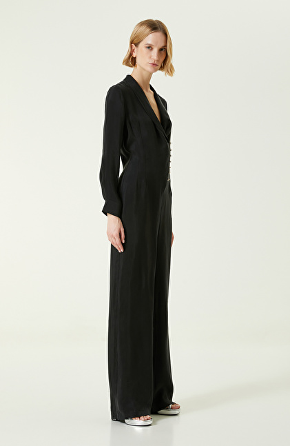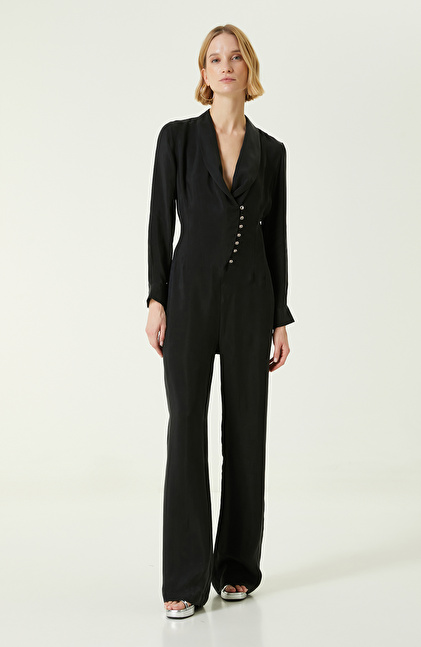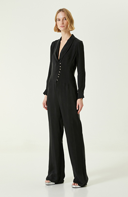 Slim Fit; Şal Yaka; Düğme Kapatmalı; Bol Paça Tulum