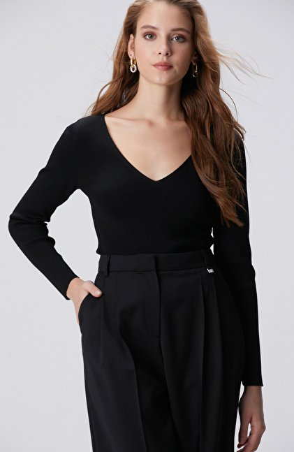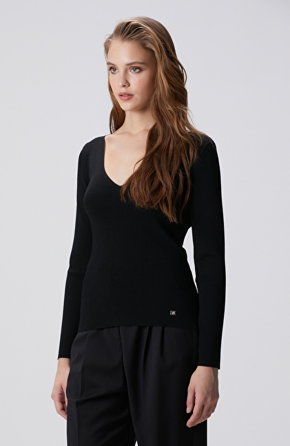 NETWORK Smart Casual Siyah V Yaka Basic Kazak