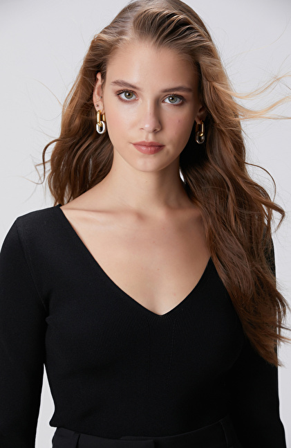 Slim Fit; V Yaka; Uzun Kol; Cepsiz; Basic; Triko Kazak