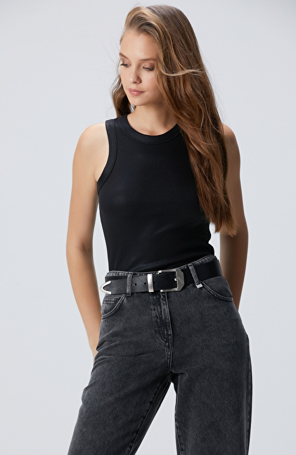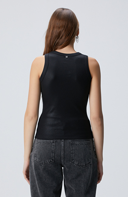 Siyah Varak Baskılı Örme Atlet