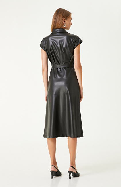 NETWORK Smart Casual Siyah vegan Deri Midi Elbise