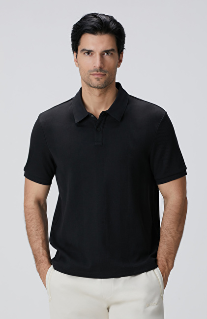 Siyah Waffle Dokulu T-shirt