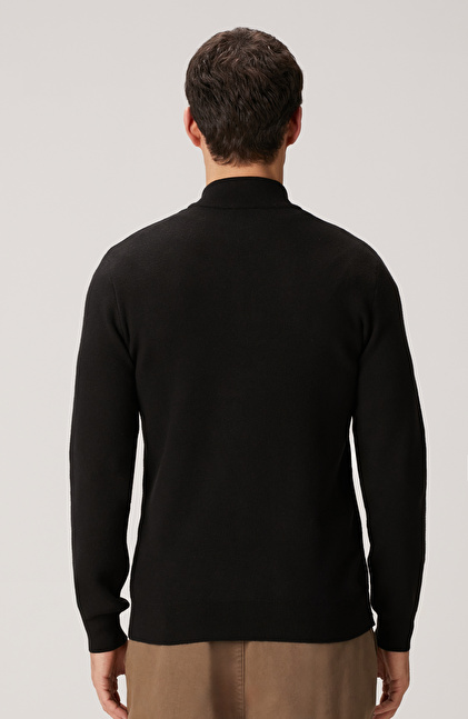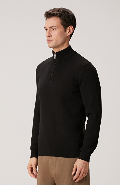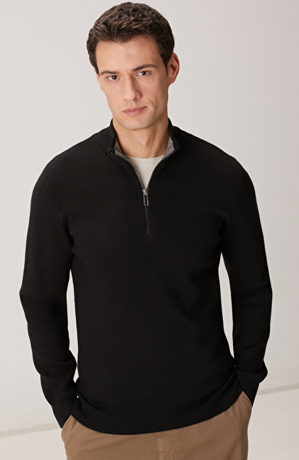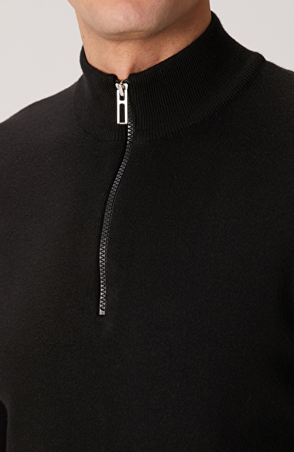 Siyah Yakası Fermuarlı Triko Kazak