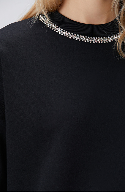 Siyah Yakası Taş İşlemeli Sweatshirt