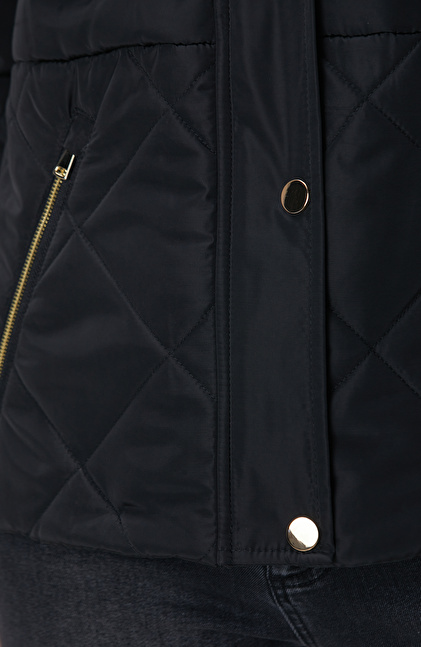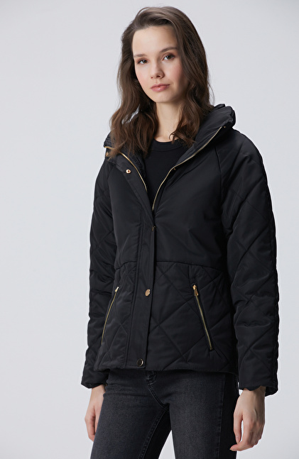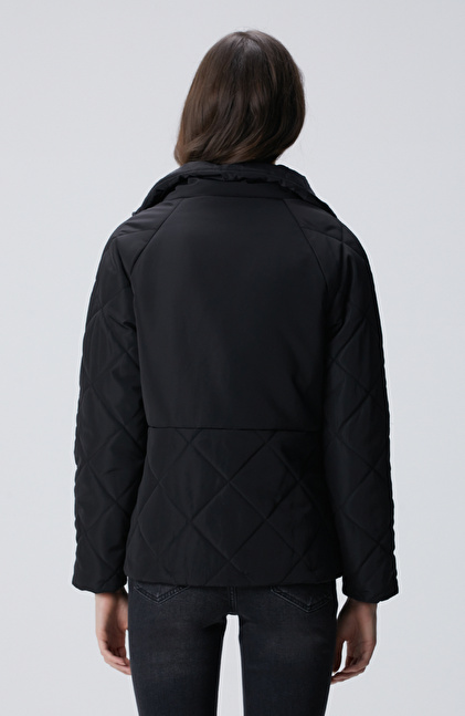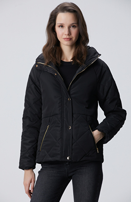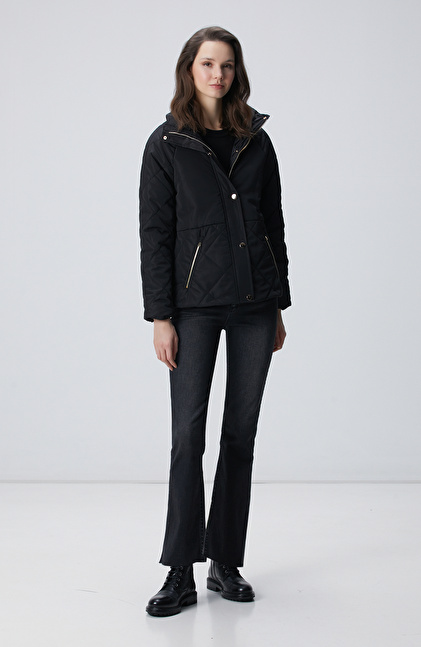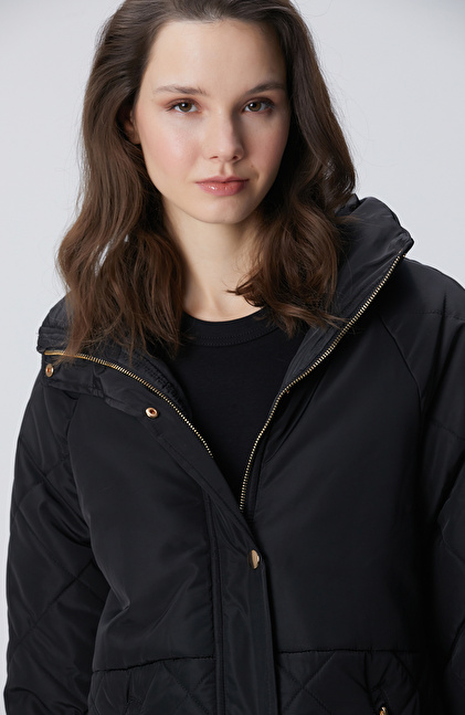 Siyah Yarım Kapitone Detaylı Kaban