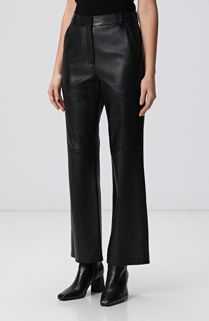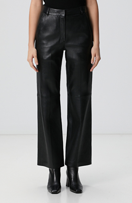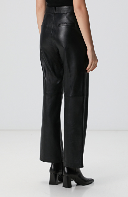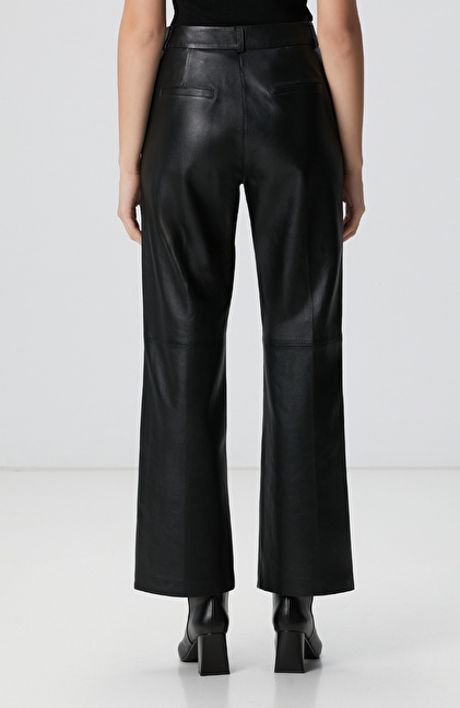 Regular Fit; Yüksek Bel; Düz Paça; Deri Pantolon; Kesik Detaylı; Cepli;Hayvansal Kökenli Tekstil Dışı Parçalar İçerir.