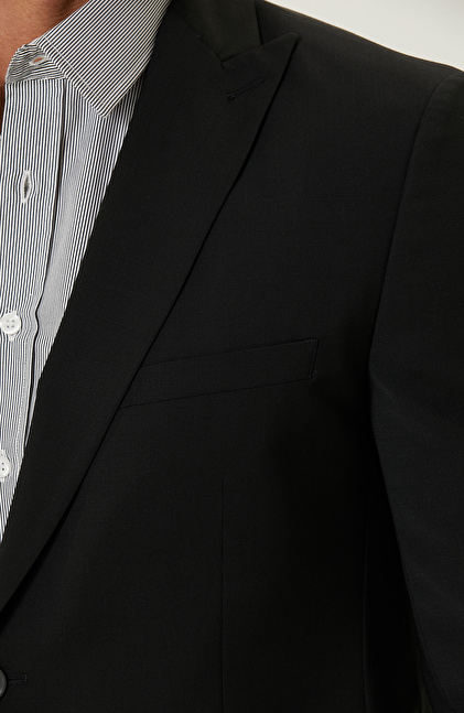 Slim Fit; Piklapel Yaka; Uzun Kollu; Dokuma Yün Ceket; Kapaklı Cepli