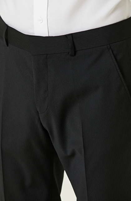 Slim Fit; Mono Yaka; Çizgili; Çift Yırtmaçlı; Yün Karışımlı Takım Elbise; Normal Bel; Düz Paça; Kapaklı Cep;