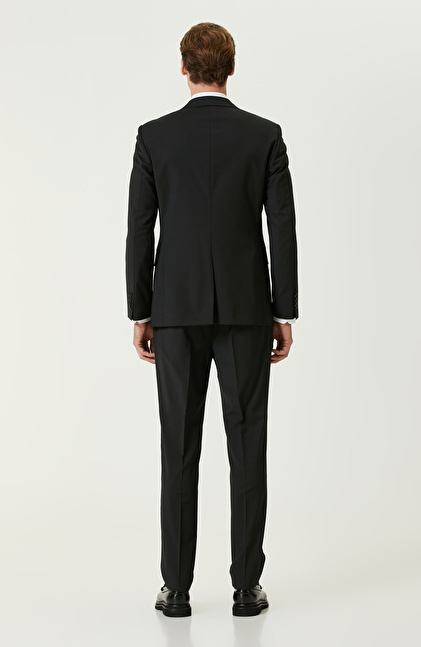 Siyah Yün Karışımlı Çift Yırtmaç Takım Elbise