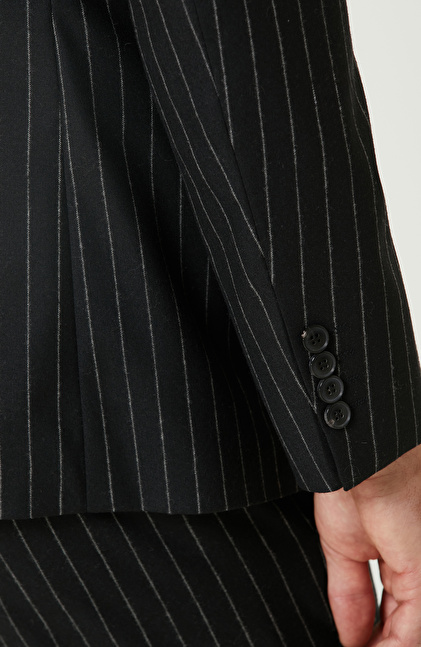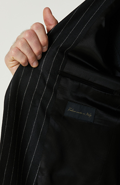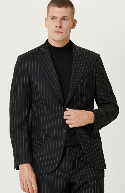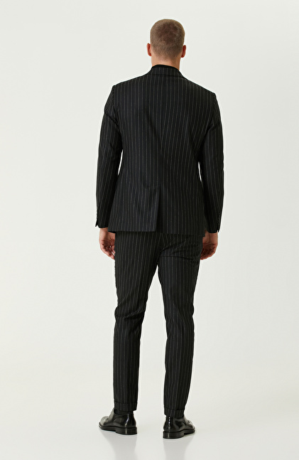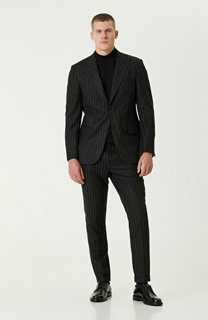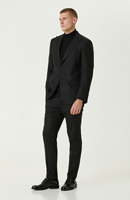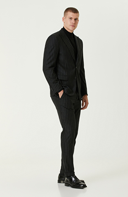 Siyah Yün Karışımlı Çift Yırtmaç Takım Elbise