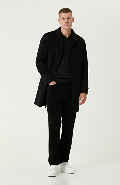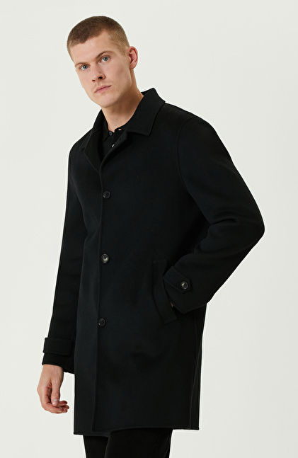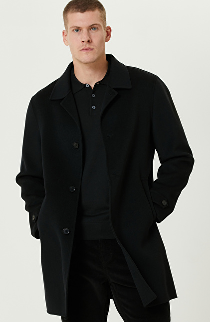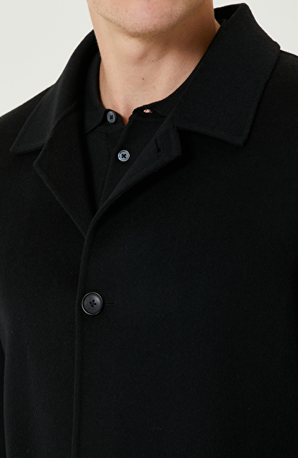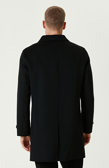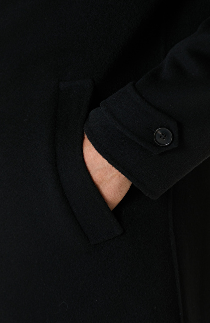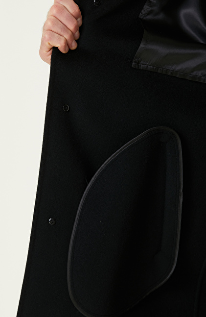 Siyah Yün Karışımlı Dikişsiz Handmade Palto