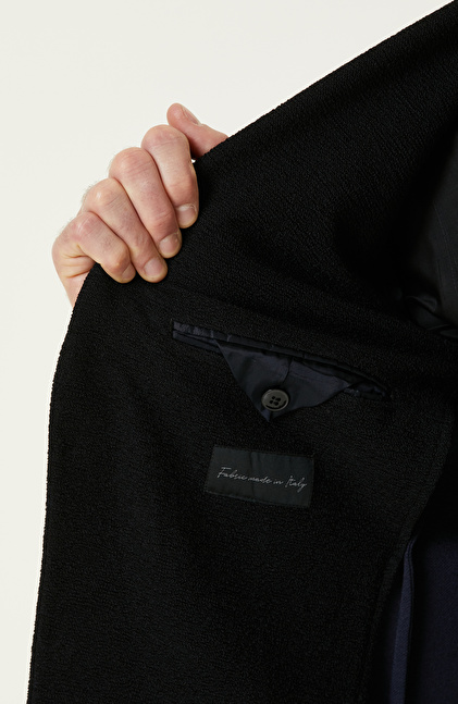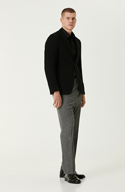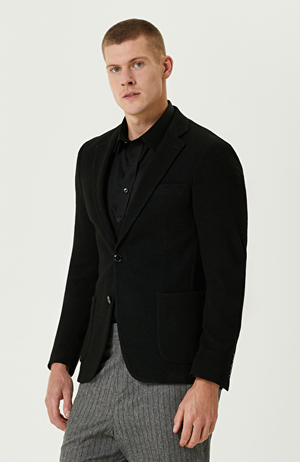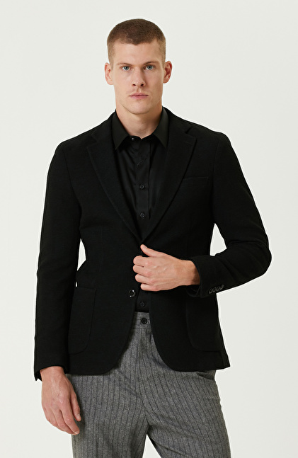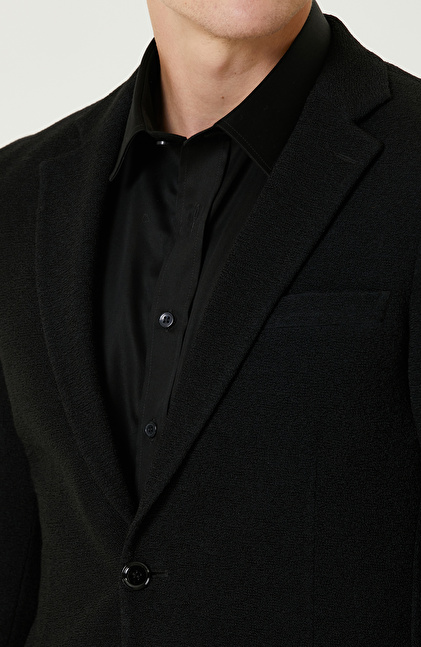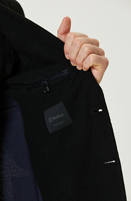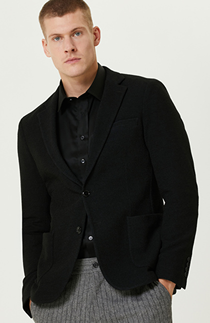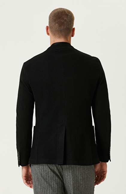 Siyah Yün Karışımlı Jakarlı Örme Ceket