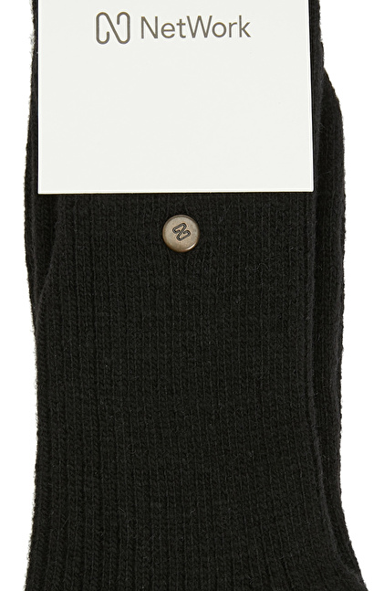 Siyah Yün Karışımlı Kadın Çorap