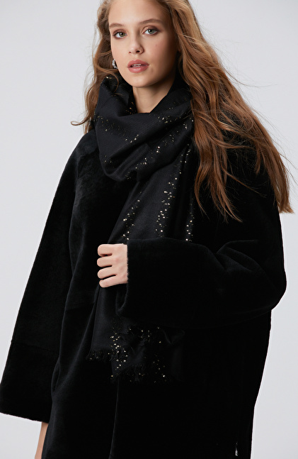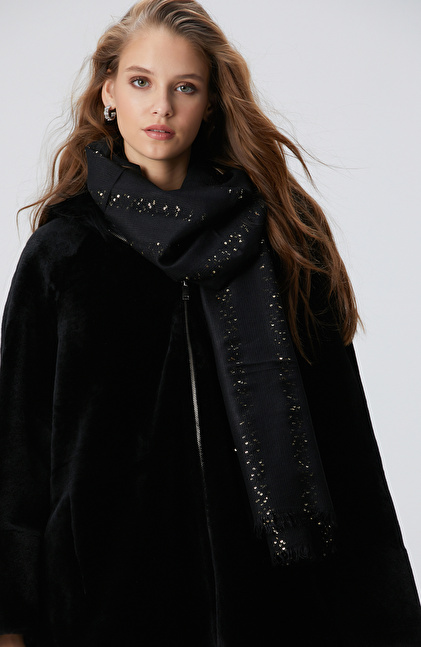 Siyah Yün Karışımlı Kadın Fular