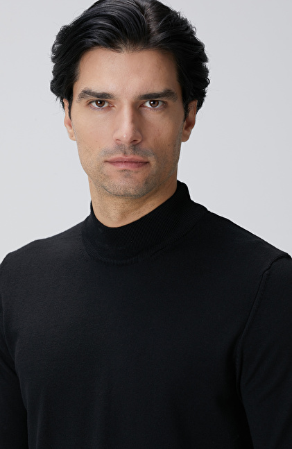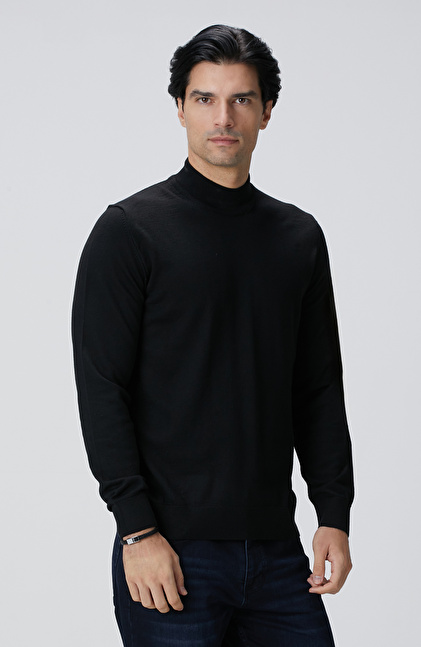 Siyah Yün Karışımlı Kazak