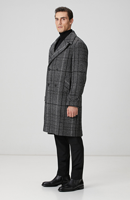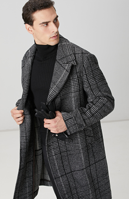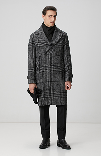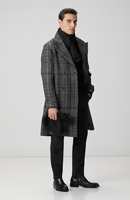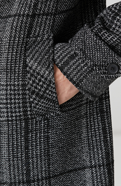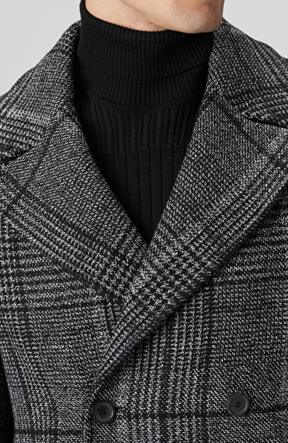 Siyah Yün Karışımlı Palto
