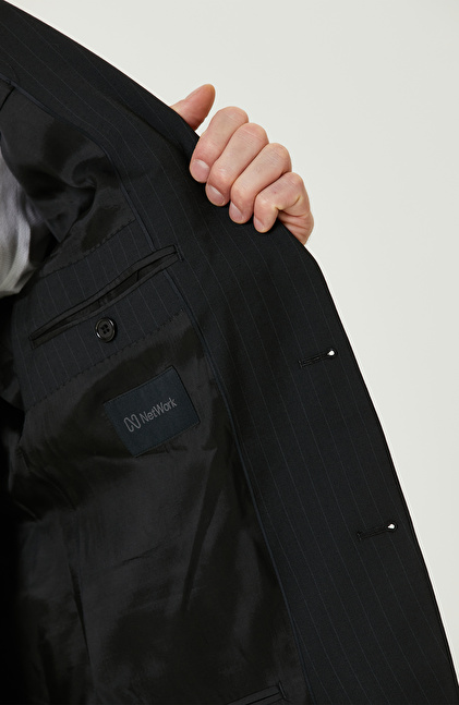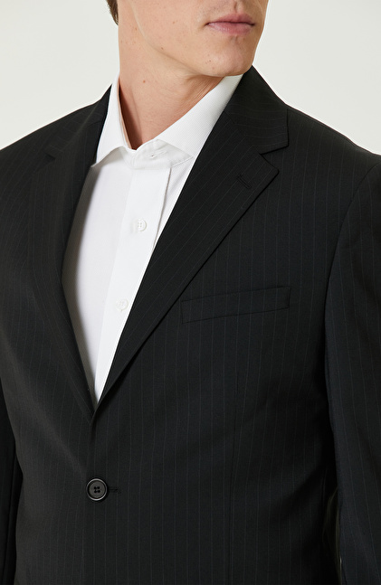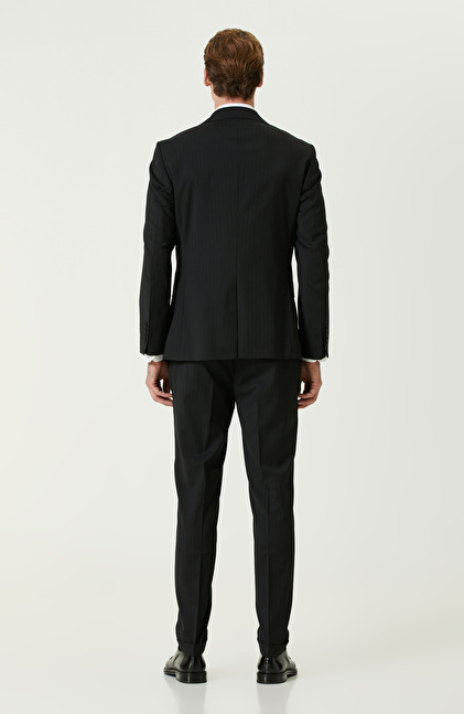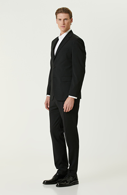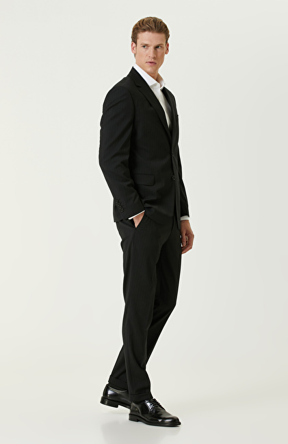 Siyah Yün Karışımlı Piklapel Yaka Takım Elbise