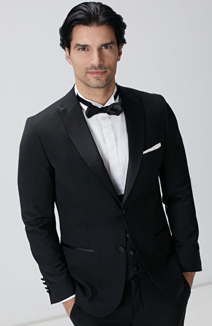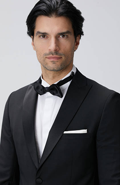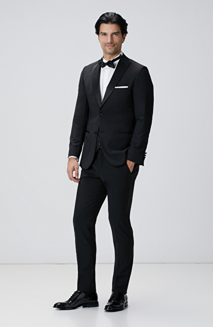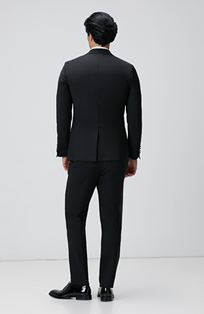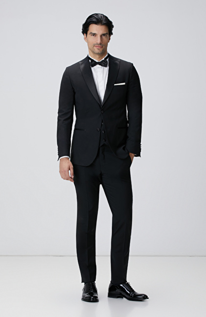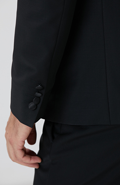 Siyah Yün Karışımlı Smokin Takım Elbise