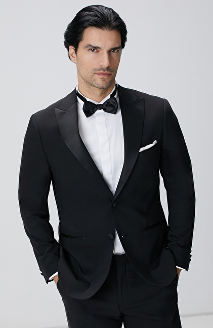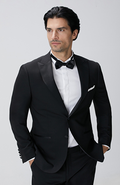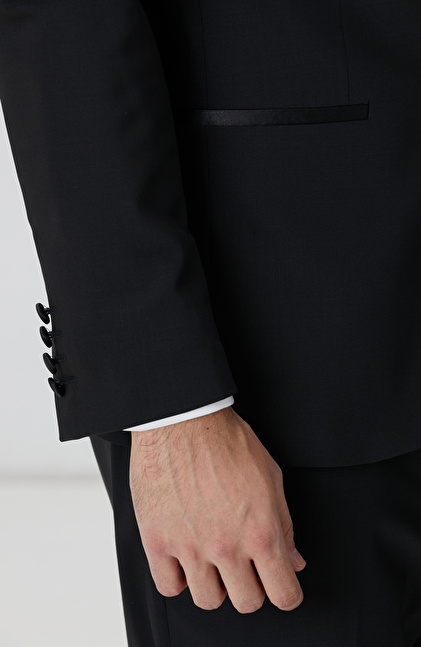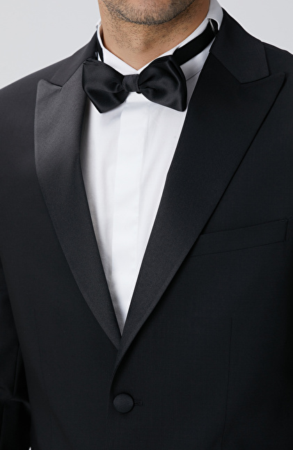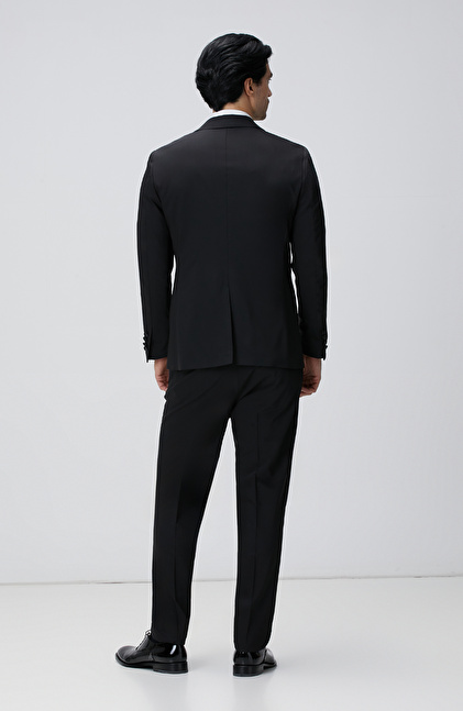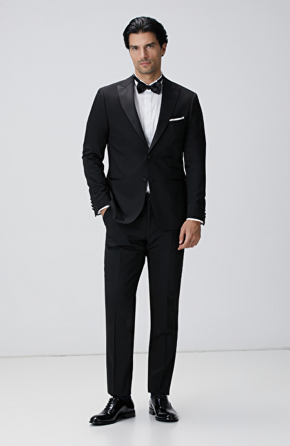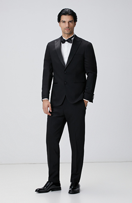 Siyah Yün Karışımlı Smokin Takım Elbise