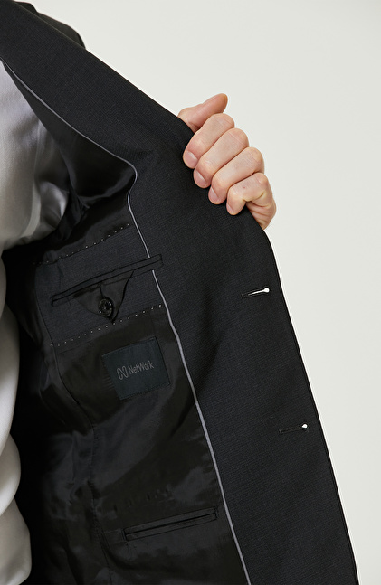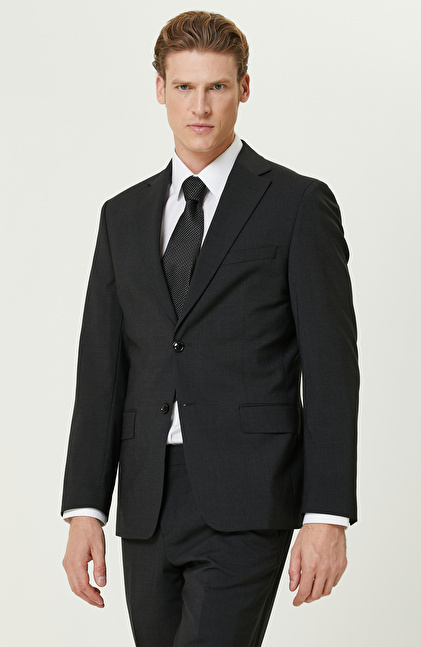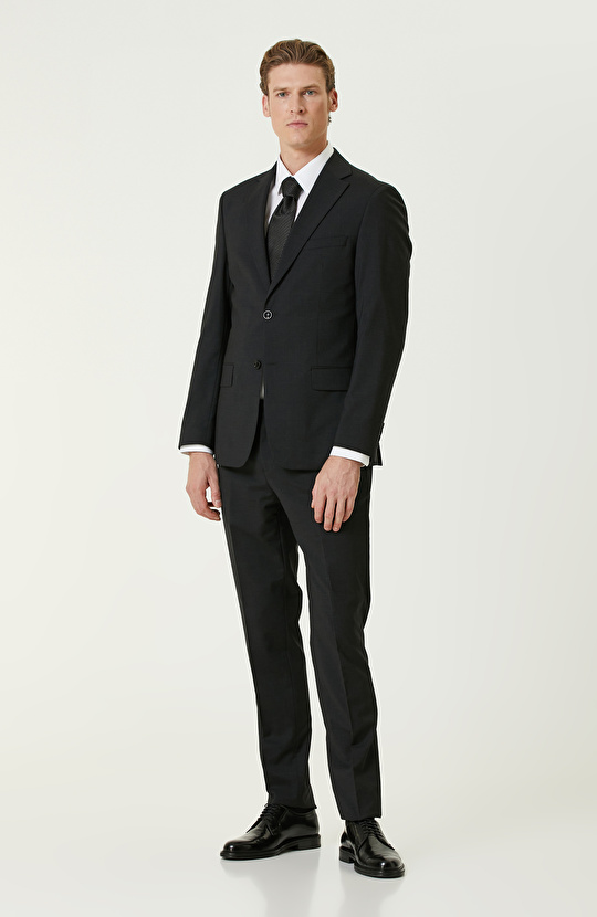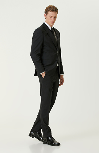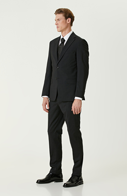 Siyah Yün Karışımlı Takım Elbise