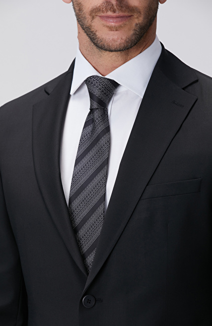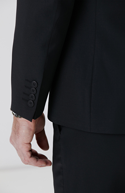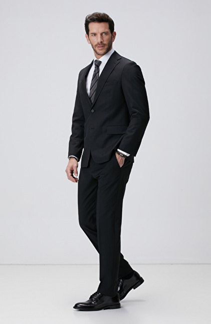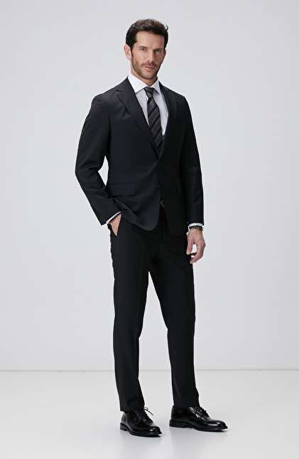 Siyah Yün Karışımlı Takım Elbise