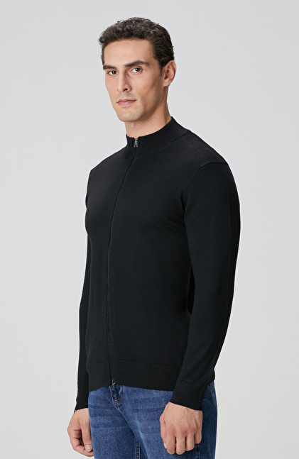 Siyah Yün Karışımlı Triko Hırka