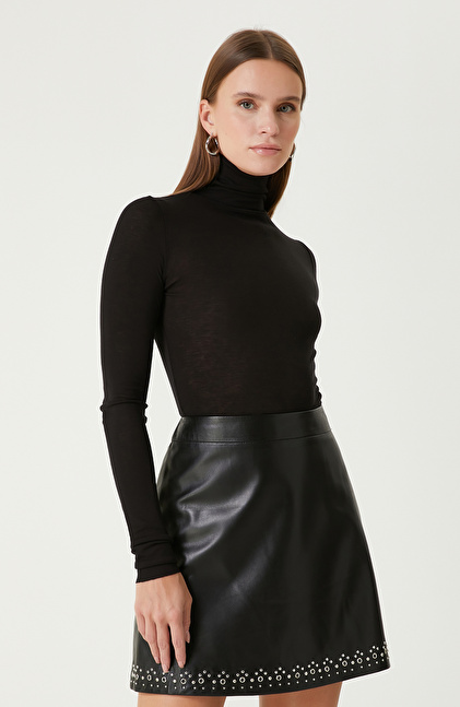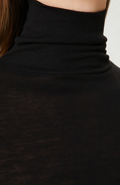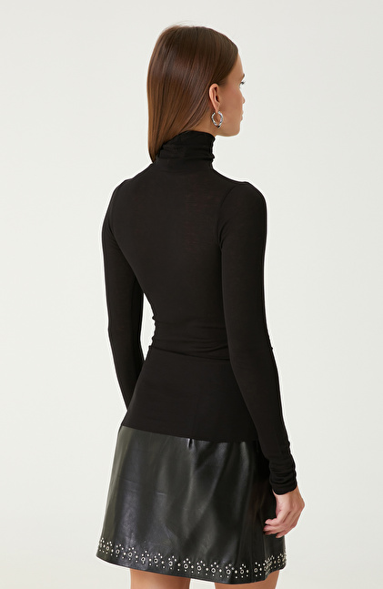 Siyah Yün Karışımlı Triko Kazak