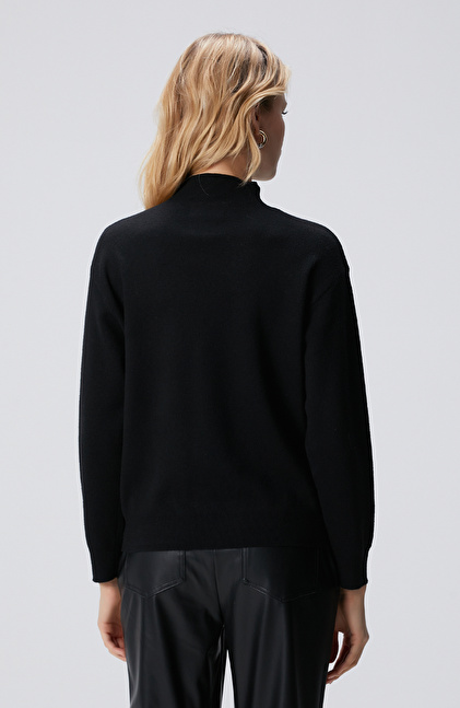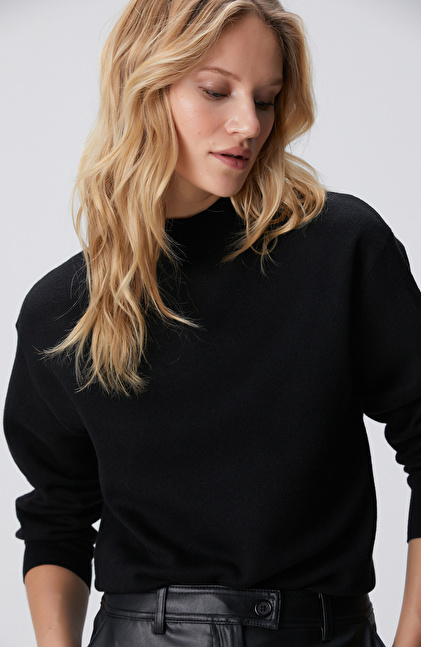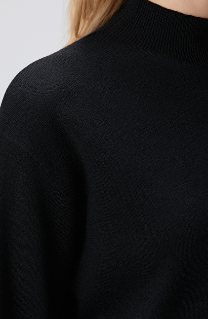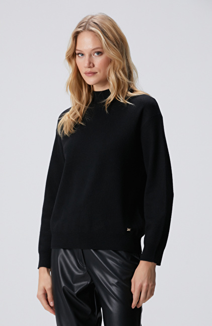 Siyah Yün Karışımlı Triko Kazak