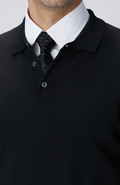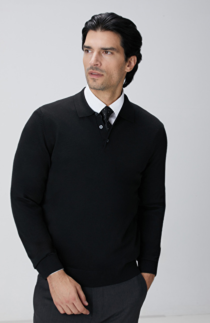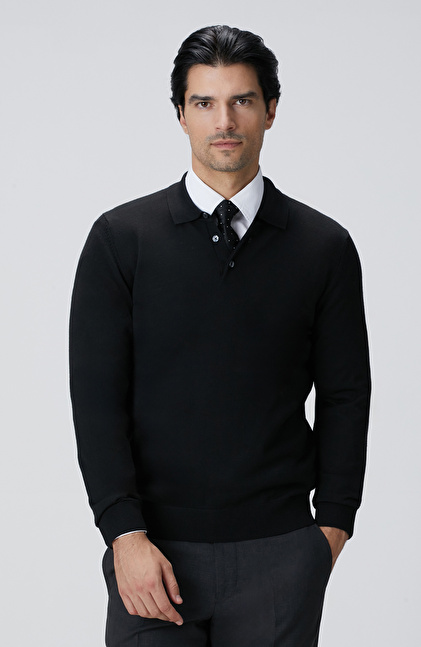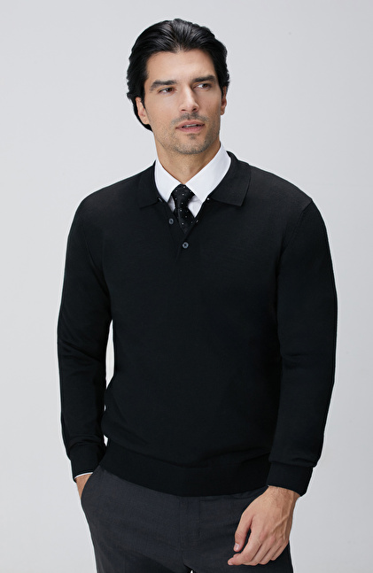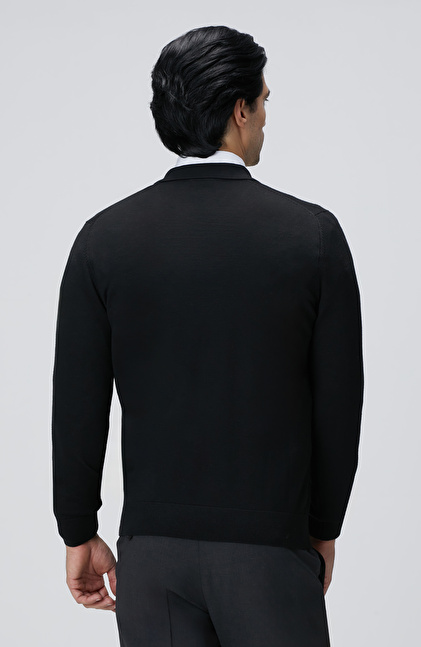 Siyah Yün Karışımlı Triko Kazak