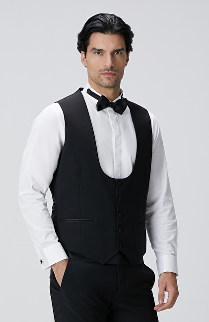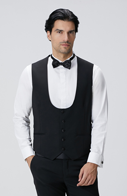 Siyah Yün Karışımlı Yelek