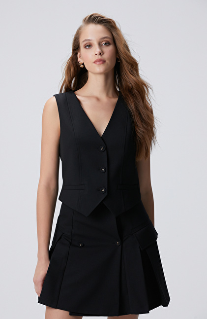 NETWORK Smart Casual Siyah Yün Karışımlı Yelek