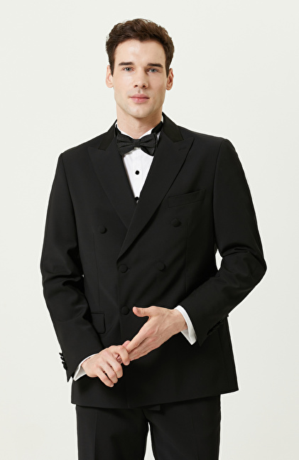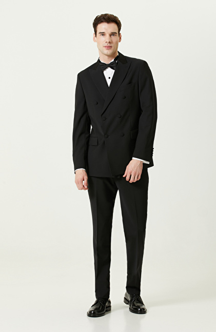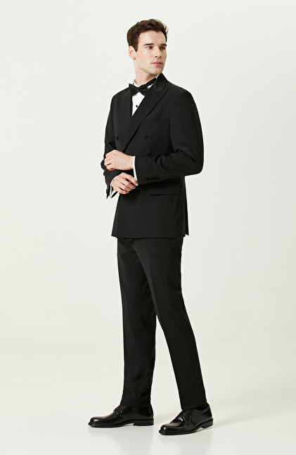 NetWork Black koleksiyonunun D02-Business serisinde yer alan Siyah Yün Smokin Takım Elbise, şık giyinmeye özen gösteren erkekler için koleksiyonunun zamansız tasarımları arasında yer alır. Özel zamanlarda kullanıma uygun olan smokin takım elbise, kaliteli kumaş yapısı ve şık tasarımı ile ön plana çıkar. Kruvaze yaka detaylı ceket ve düz paça kesim pantolon ile NetWork’ün modern çizgilerini yansıtan smokin takım elbise, slim fit kesimiyle klasik kombinlerin vazgeçilmez bir parçası olur. Bu tasarımı özel gün ve davetlerde beyaz non-iron gömlek ve siyah deri ayakkabı ile kombinleyebilirsiniz.