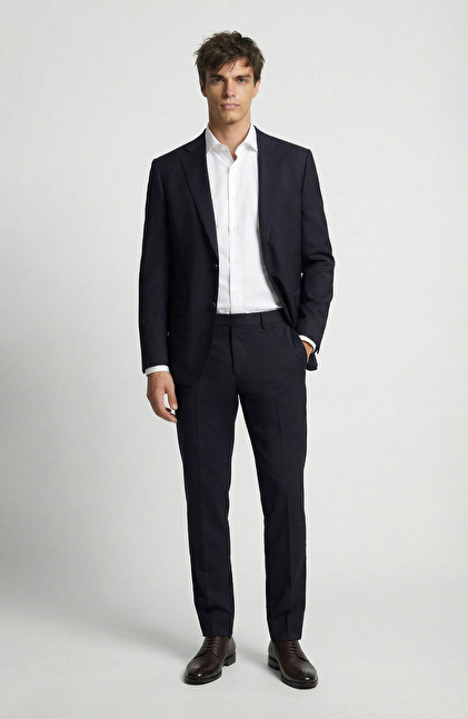 Slim Fit Lacivert Mono Yaka Yünlü Takım Elbise
