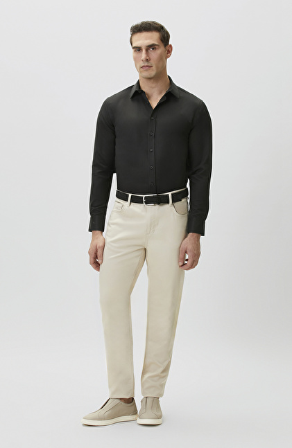Slim Fit Siyah Diyagonal Cotton Gömlek