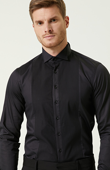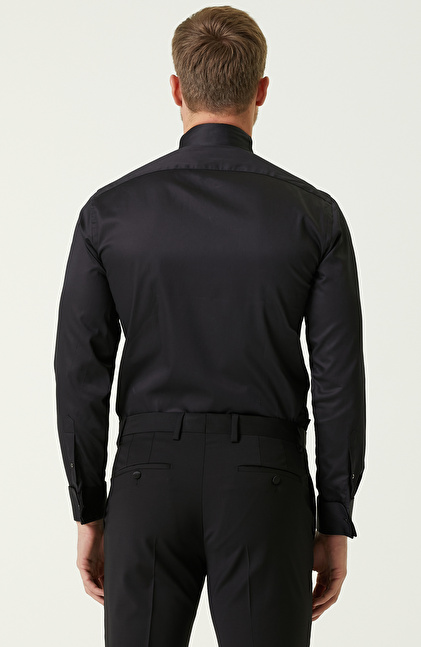 Özel gün stillerinin ilk tercihi smokin gömlek, pamuklu dokusuyla konfor ve sürdürülebilirlik vaat ediyor. Şık tamamlayıcı parçayı kol düğmesi ile kullanabilirsiniz.