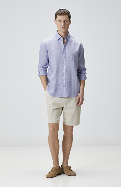 Slim Fit Taş Parça Boya Diyagonal Chino Şort