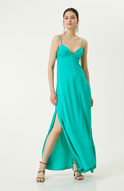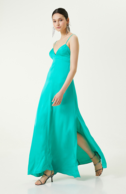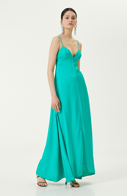 Su Yeşili Askılı Abiye Elbise