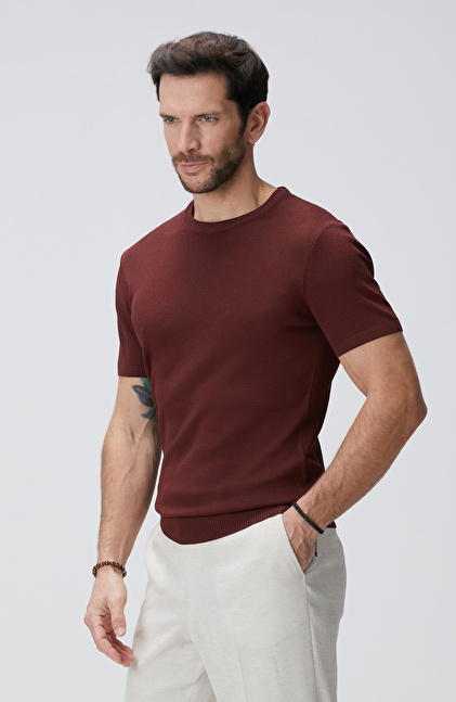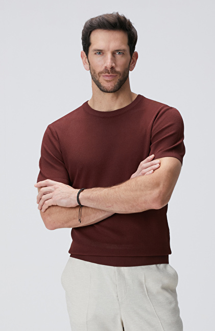 Slim Fit; Bisiklet Yaka; Kısa Kol; Jakarlı; Triko Kazak