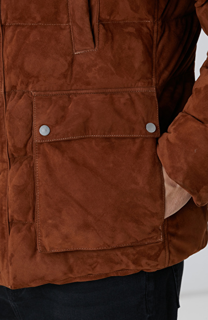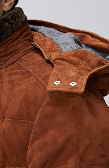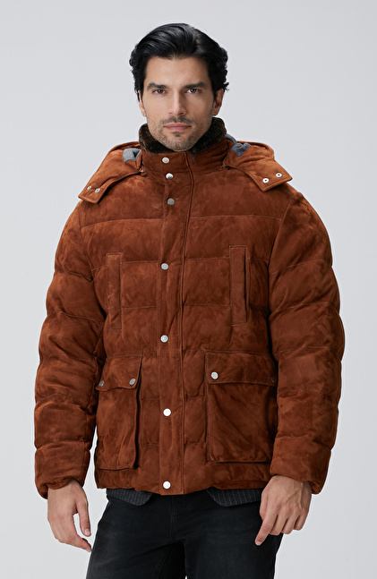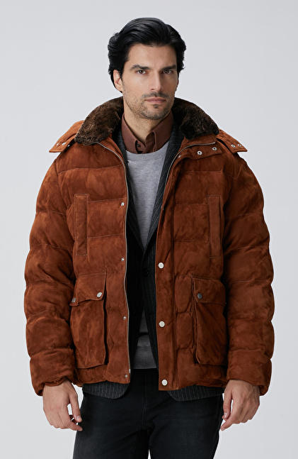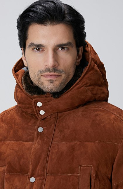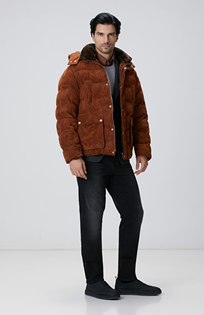 Comfort Fit; Kapüşon Yaka; Uzun Kol; Kapitone Desen; Deri Kaban;Hayvansal Kökenli Tekstil Dışı Parçalar İçerir.