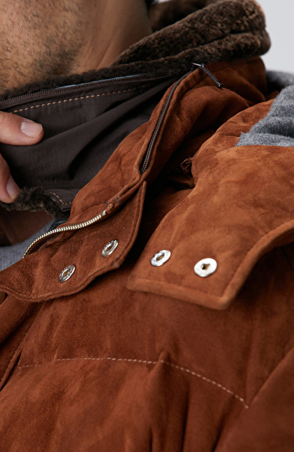 NETWORK Smart Casual Tarçın Kapüşonlu Deri Kaban