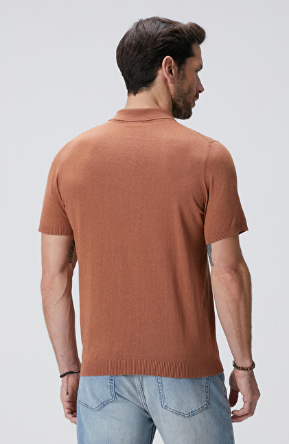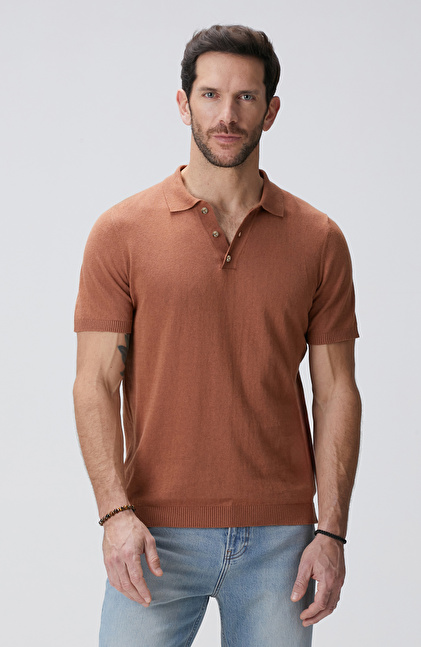 Slim Fit; Polo Yaka; Düğmeli; Kısa Kol; Keten Karışımlı; Triko Kazak