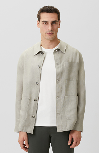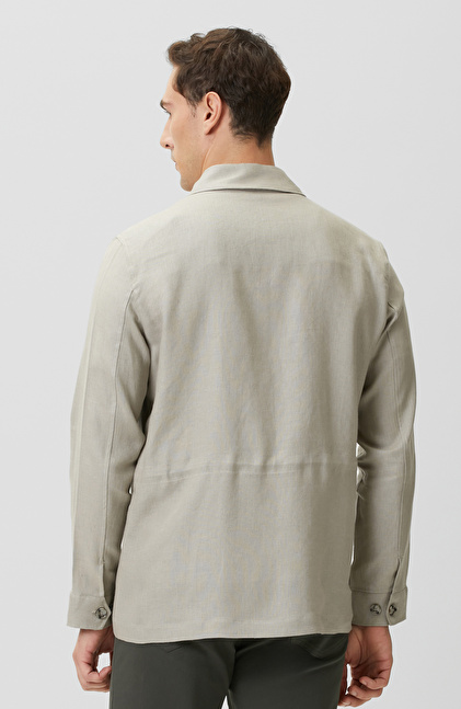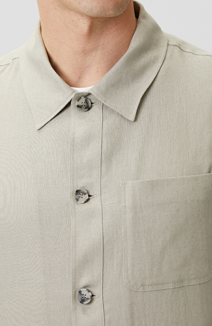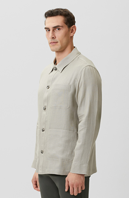 Comfort Fit; Gömlek Yaka; Cep Detaylı; Keten Dış Gömlek