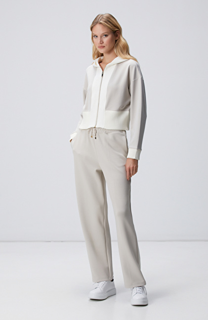 Taş Kapüşonlu Crop Sweatshirt