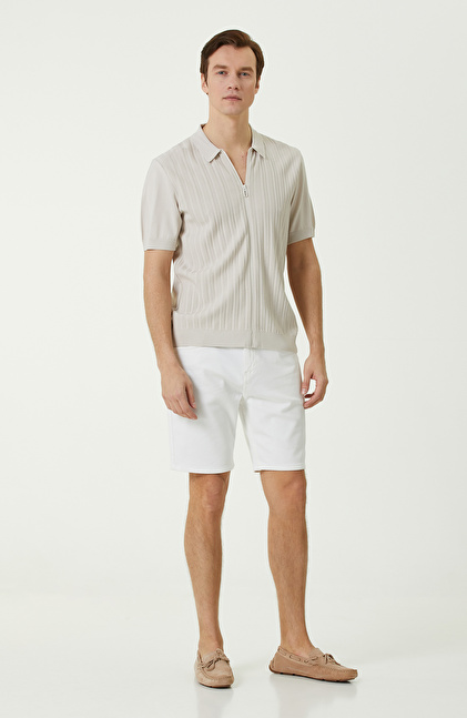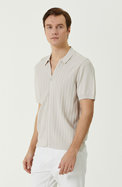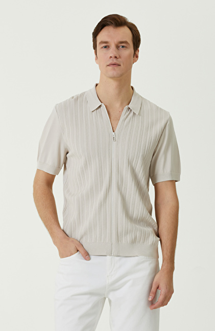 Taş Rengi Fermuarlı Triko Gömlek