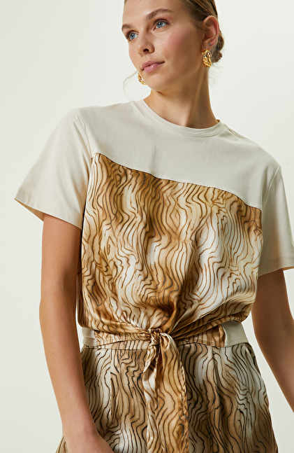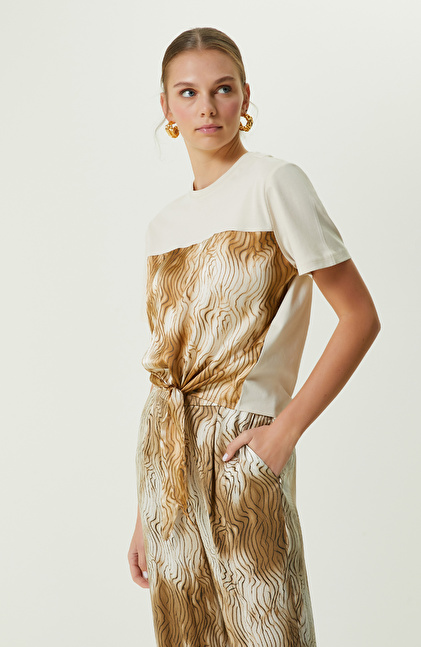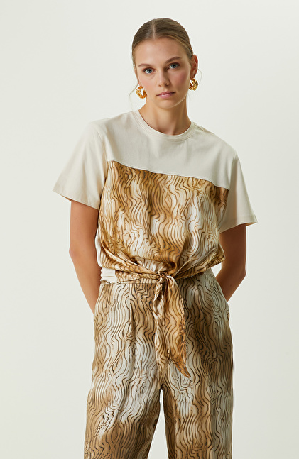 Detaylarla zenginleştirilmiş tasarımları seven kadınların tercihi Taş Rengi Kısa Kollu Bisiklet Yaka T-shirt, yaz kombinlerinizi hareketlendirebilen parçalardan biridir. NetWork'ün casual ve zamansız stili ile tamamlanan tişört, önünde yer alan bağlama detayı sayesinde crop olarak giyilebilir ve şık görünümünüzü destekler. Basic fit kalıbı ise son derece konforlu hissetmeniz için idealdir. Yumuşak dokusu ve yüksek performanslı yapısı sayesinde hemen her kombine dahil edilebilir. Önündeki garni ise rahat ve şık kombinler elde etmenizi sağlar. Siz de taş rengi tişörtü açık mavi denim pantolon ve bej ceket ile giyebilir, bordo sandalet, bordo el çantası ve kemik rengi takılarla kombinleyebilirsiniz.