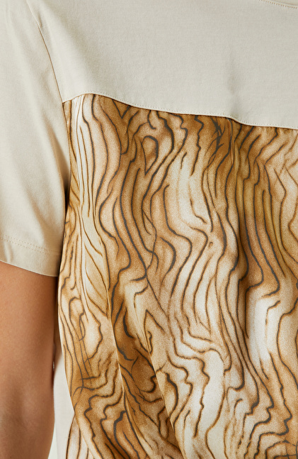 Taş Rengi Kısa Kollu Bisiklet Yaka T-Shirt