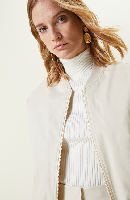 Taş Rengi Ribana Detaylı Mont