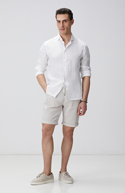 Comfort Fit; Normal Bel; Diz Boy; Çizgili Şort; Düz Paça; Yan Cepli