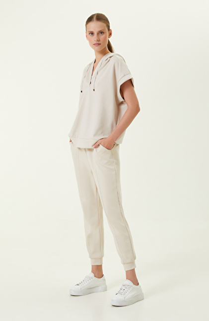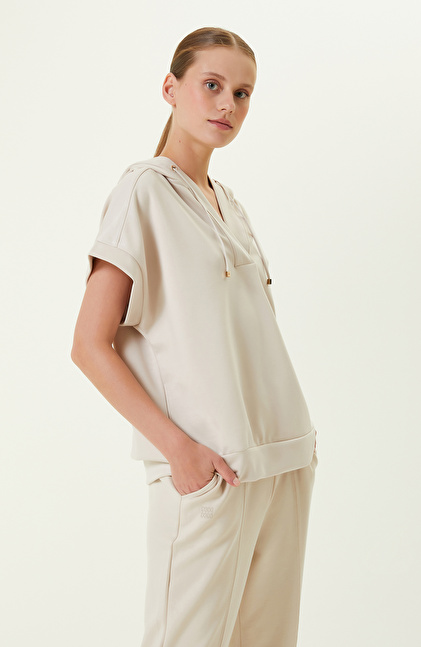 NetWork Leisurewear serisinde yer alan Taş Sweatshirt, şık tasarımı sayesinde pantolon ve eşofman altları ile birbirinden güzel kombinler oluşturuyor. Kollarında ve etek ucunda yer alan manşetlerinin yanı sıra bağcıklarla tamamlanan kapüşonlu modeliyle sportif bir görünüm yakalıyor. V yakalı tasarımıyla etkileyici bir duruş vadediyor. Kaliteli kumaşının ince ve hafif yapısı sayesinde gün boyu konforlu hisler yaşatıyor.