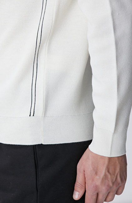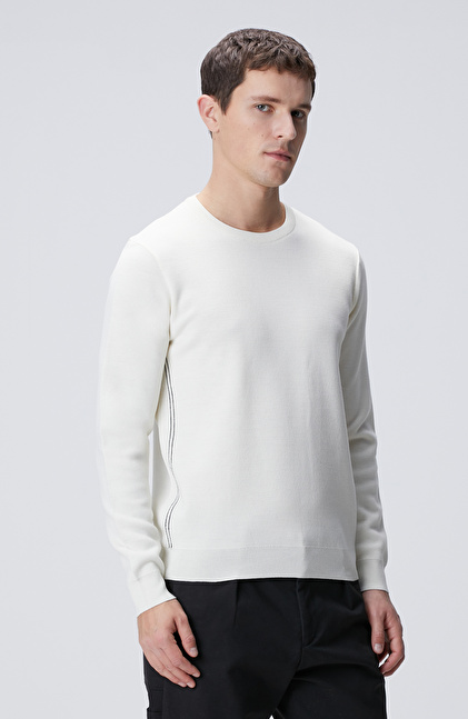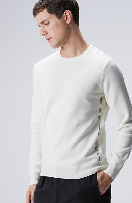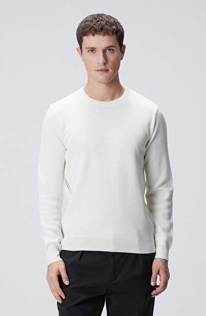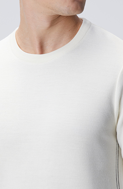 Slim Fit; Bisiklet Yaka; Nervür Detaylı; Yün Karışımlı Kazak